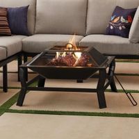 Enjoy cool nights around a warm and toasty fire with the Mainstays 30 in. Square Fire Pit. This fire pit is made from high-temperature black steel with a grate so you can easily build a traditional wood-burning fire. A steel mesh spark guard fits over the fire bowl when it's burning for added safety, and a fire pit poker tool is included for tending the fire. There's also a PVC cover to protect the fire pit between uses. Place chairs around the Mainstays 30 in. Square Fire Pit with Mesh Spark Guard and gather your friends to enjoy hours of warmth.