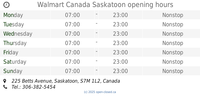 Walmart Canada Saskatoon hours, 225 Betts Avenue