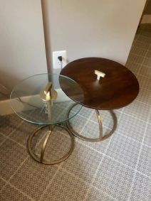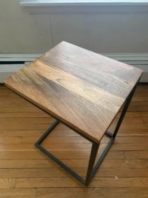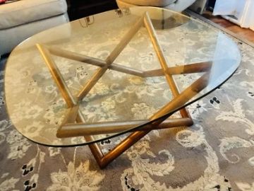 April 15, 2019 - Purchased from West Elm for $300 in Fall 2017 Asking $150 Solid and engineered wood with Walnut veneer. 32"w x 31"d x 17"h. Link to original: Retro Tripod Coffee Table