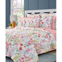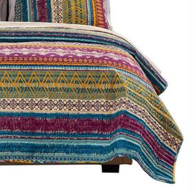 This stylish designer bedding set uses a multicoloured feather print. This collection uses the stylish colours of coral, turquoise, grey, gold and white. The design uses brushed microfiber fabrics that are machine washable for easy care. ... Adorable!! Just as advertised. Well made fabric lightweight but fully stuffed comforter. Size is generous with enough fabric to hang over the side. Picture is of my sweet girl comfortably asleep.