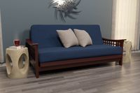 This futon and mattress is a classic hardwood frame with a space-saving design. This unique and versatile full-size futon sofa easily converts to a bed. This multi-functional piece of furniture can find a home in just about any type of room.