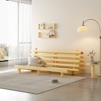 Crafted with a solid wood frame, it features a foam and cotton mattress balanced on a slatted base balanced on splayed feet, and it folds in half to form an armless sofa, just right for gaming, relaxing, or bunking down for movie night.