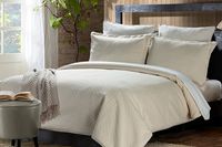 The clean, tonal design offers a modern take on comfort, creating a serene and elevated atmosphere. Available in queen (one comforter, two standard shams) and king (one comforter, two king sham) sizes, its a timeless staple that layers beautifully ...