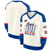 Women's WEAR by Erin Andrews Cream Buffalo Bills Racing Crew V-Neck Sweatshirt