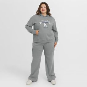 Women's Los Angeles Dodgers WEAR by Erin Andrews Gray Waffle-Knit Long-Sleeve Hoodie & Lounge Pant Set
