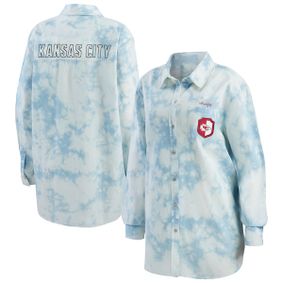Women's WEAR by Erin Andrews Denim Seattle Seahawks Chambray Acid-Washed Long Sleeve - Button-Up Shirt