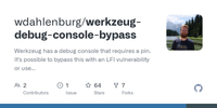GitHub - wdahlenburg/werkzeug-debug-console-bypass: Werkzeug has a debug console that requires a pin. It's possible to bypass this with an LFI vulnerability or use it as a local privilege escalation vector. · GitHub