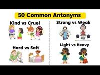 Antonyms (50): Good-bad, hot-cold, add-subtract, plus-minus, happy-sad, big-small, circle-square, high-low, light-dark, loud-quiet, pretty-ugly, calm-chaotic, clean-dirty, birth-death, rough-smooth, stop-go, start-end, rain-snow, wet-dry, empty-full, young-old, well-sick, love-hate, north-south, boy-girl, true-false, buy-sell, student-teacher, mother-father, cat-dog, east-west, up-down, left-right, shirt-pants, laugh-cry, last-first, laugh-cry, on-off, open-close, fat-skinny, top-bottom, over-under, sweet-sour, crunchy-chewy, soft-hard, long-short, found-lost, rich-poor, work-play, kind-rude.
