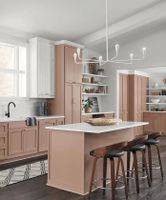 This kitchen cabinet color idea is not exactly black. Instead, it's more of a dark grey color. Charcoal is a more neutral color choice that is more versatile than black. It's a top choice for dark-colored modern kitchens and minimalist designs. ... Blush pink is a soft, fun, and inviting muted pastel that comes off as a warm white at first glance. It's a top choice for vintage, coastal, or modern kitchens and can be styled with a chic feel.