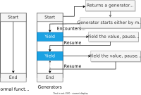 Once the generator's function code reaches a "yield" statement, the generator yields its execution back to the for loop, returning a new value from the set. The generator function can generate as many values (possibly infinite) as it wants, ...