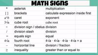 Math Symbols List (+,-,x,/,=,...)
