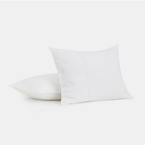 A decorative pillow covering which fits a 26” x 26” European Square pillow. It is usually finished with a flange. The sham closure features an opening tucked between two overlapping pieces of fabric.