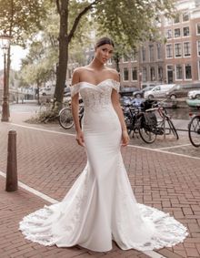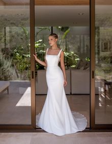 Sometimes called column dresses, this silhouette elongates the body and gently hugs curves. It's a striking modern look that’s ideal for brides who don’t want to be overwhelmed by too much fabric.