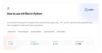 Unluckily, I was unable to find any PEPs or other official recommendations on what should actually be stored in `__init__.py` file. Looking through the answers on StackOverflow I get mixed responses. Some people do actually put classes or other definitions there, some leave it empty or just do basic imports. To me, it's a subjective matter and it's up to you on how do you decide to use this file. However, when I consider reasons for and against mentioned above, I'm coming to the conclusion it's better not to do anything besides top-level imports in __init__.py. What is your opinion? Can you share any popular code bases utilizing init files in any other way than doing just simple imports?