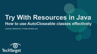 java.lang.AutoCloseable, which includes all objects which implementjava.io.Closeable, can be used as a resource.The following example reads the first line from a file. It uses an instance of BufferedReader to read data from the file. BufferedReader is a resource that must be closed after the program is finished with it: