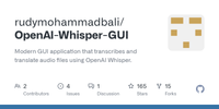 GitHub - rudymohammadbali/OpenAI-Whisper-GUI: Modern GUI application that transcribes and translate audio files using OpenAI Whisper.
