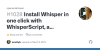 Install Whisper in one click with WhisperScript, a Windows and MacOS desktop app GUI for Whisper with Speaker Diarization, Recording and Video Player · openai/whisper · Discussion #1028
