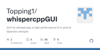 GitHub - Topping1/whispercppGUI: GUI for whispercpp, a high performance C++ port of OpenAI's whisper