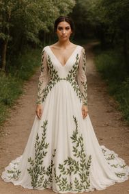 White with green wedding dress and more · , 11 Pins · · · , 1mo · , 84 Pins · · · , 1w · , 59 Pins · · · , 3d · , 39 Pins · · · , 5d · , 296 Pins · · · , 4d · Wedding Dress With Leaves Green · Wedding Dress With Plants · Non Traditional Colored Wedding Dress · Vines Wedding Dress · Cream And Green Wedding Dress · Wedding Dress With Leaf Detail · Wedding Dresses Leaves · Emerald And White Wedding Dress ·