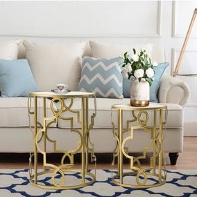 Asst. of 2 Burse Nesting Tables, White/Gold