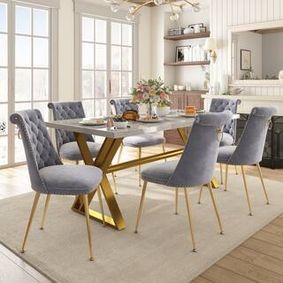 Options from $208.59Recaceik Dining Table Set for 4, Faux Marble Kitchen Table & 4 Button Tufted Pull Point Chairs, Space Saving for Kitchen and Dining (White & Gray)