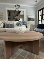 January 5, 2024 - Stunning round white oak coffee table, artfully crafted by hand using individual white oak wood pieces to create the herringbone or straight pattern on top. The top is framed with thin white oak wood that we craft through a process of steam ...