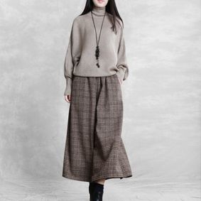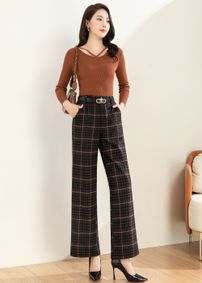 Chic Design: These high-waisted wide-leg trousers feature a classic plaid pattern, offering a timeless style that can be effortlessly dressed up or down.
