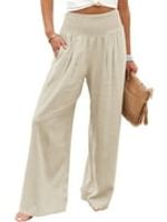 CIDER Women's High Waisted Wide Leg Pants Plaid Pants Business Casual Trousers with Pockets: Grey, M at Amazon Women’s Clothing store
