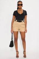Buckle Up Cargo Shorts - Khaki | Fashion Nova