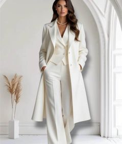 Women 3 Pcs Formal Suit Long Blazer, Vest, and Straight ...