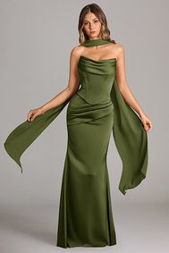 Olive Green Satin Dress Long · Plus Size Formal Dresses For Wedding · Green V-neck Satin Maxi Dress · Plus Size Wedding Guest Dress · Casual Wedding Attire · Wedding Guest Outfit Fall · Sage Green Dress · Strapless Evening Gowns · Page 2 for Dresses For Women - Shop Trendy Dresses | Fashion Nova ·