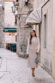 What makes a woman’s suit formal and not casual/office wear?