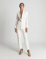 April 7, 2023 - This beautiful ivory suit is perfect for your wedding day. We love that the blazer is decorated with pearl buttons. ... Look closely and you’ll see that’s ivory floral jacquard (heart eyes). Catch a little light and have some serious fun with your shoes with those cropped pants! ... This sophisticated relaxed fit suit jacket is detailed with satin buttons at the sleeves, chic flap pockets, and a notched lapel.
