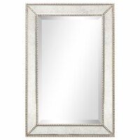 This wall mirror is raised slightly from its surrounds by a 1 inch bevel that helps the mirror to project a presence into the room while also providing a space for adornment The mirror has a silver pattern with bronze beads that recalls a royal style Features . Good idea for home decor. Ready to Hang Specifications . Finish Antique. Frame Material Solid Wood. Beveled Edge Size 1 . Size 20 x 30 . Weight 19 62 lbs