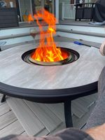 Material: Terrafab, Stainless steel. Fuel type: Wood Pellet/Twig/Wood. ... Dual Function Design: This fire pit table features a versatile design with a removable lid. When covered, it serves as a functional dining table.