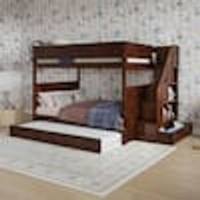 Amazon.com: MERITLINE Twin Over Full Bunk Bed Frame for Kids, Mission Style Wood Twin Over Full Size Bed Frame with Stairs and Storage : Home & Kitchen