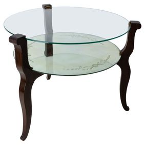 Bring Art charm to your living room with this round glass coffee table. Solid ash wood frame and walnut finish offer style and stability—perfect for modern, sophisticated spaces.