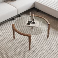 Elevate your living space with this chic Mid-Century Modern coffee table. Its square glass top and walnut wood base create a minimalist yet warm aesthetic, perfect for any decor.