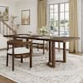 Handsome and hardworking, our Sawyer dining set brings the spirit of contemporary American design to your space. Every element has been devised and developed by Living Spaces with thoughtful intention, including materials and details that provide natural beauty, durability and functionality. Solid hardwood and cathedral walnut veneer are decked in a rich, warm finish that adds depth. The extendable table features a 20" leaf, so you can invite more guests, while the chair boasts a Windsor-style spindle back frame that doesn’t get more classic.