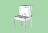 December 20, 2008 - Over the course of the last 6 months I have seen a couple examples of an antique writing desk with a drop down door/lid on the hutch. One was in a B&B and the other was in the house of a friend who said that the desk was circa 1880. I really want to make one of these desks in Cherry and have drawn one in SketchUp but I would really like to see more examples.