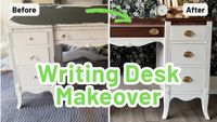 Writing Desk Makeover: Classic Taupe & Natural Wood - YouTube