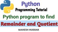 March 18, 2023 - # WAP to find quotient and remainder of the given number dividend = int(input("Enter the dividend number :--> ")) divisor = int(input("Enter the divisor number :--> ")) quotient = dividend // divisor remainder = dividend % divisor print("\n\nQuotient :-->", quotient) print("Remainder :-->", remainder)...