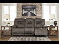 Description · This set with Easy View™ power adjustable headrests delivers comfort at the touch of a button. Easily position the recliner, its headrest and lumbar support to your liking for maximum comfort. Plus, with the convenient USB charging ports, cell phones or laptops can be charged without having to get up. The feel of heavy weight leather surrounds you via the cushioned seat, interior bustled back cushioning and pillow top armrest, while faux leather is on the back and sides for affordability. The cloud effect seen in the smoke-colored upholstery creates a rustic look—perfect for your