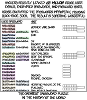 In a third, titleless column, a set of empty boxes that one might use to fill in a sequence of letters.]] The greatest crossword puzzle in the history of the world {{Title text: It was bound to happen eventually. This data theft will enable almost limitless [xkcd.com 792]-style password reuse attacks in the coming weeks.