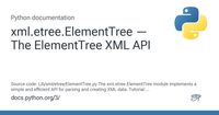 December 10, 2024 - Check for common issues like malformed XML, unsupported encodings, or incorrect file paths. Use Python's error handling mechanisms (try-except blocks) to diagnose and manage parsing errors gracefully. ElementTree does not support pretty-printing directly, but you can use xml.dom.minidom to parse the XML string and then use its toprettyxml() method to format the XML for readability.