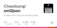 GitHub - Cheedoong/xml2json: A header-only C++ library converts XML to JSON ยท GitHub