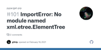 November 29, 2020 - ImportError: No module named xml.etree.ElementTree#101 · Copy link · Labels · invalidwontfix · githlp · opened · on Feb 16, 2021 · Issue body actions · Hello, on BuildRoot environment (MotionEyeOS) i used for the installed Python 2.7.15 following installer script: # curl https://bootstrap.pypa.io/2.7/get-pip.py --output get-pip.py But when i run it ..