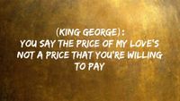 When King George III is singing, “Da da da dat da dat da da da da ya da Da da dat dat da ya da!“ he’s actually saying Die! Die! The “da ya” is actually die. The whole scat is just his way of saying, “Die! Die!”