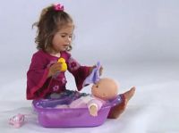 Introducing the You Me Bathtime Baby Doll - the perfect companion for splish-splash fun This adorable 12-inch hard body doll, dressed in a cozy bathrobe, just waiting for bathtime adventures. With Bathtime Baby Doll, the fun never ends Set up the included bathtub, grab the ducky, and let bathtime begin. Our set also includes a washcloth and three pretend bottles of after-bath products, so your little one can pamper their doll just like a real baby. Get ready for endless giggles and splashes with the You Me Bathtime Baby Doll - where bathtime becomes the best time of the day.