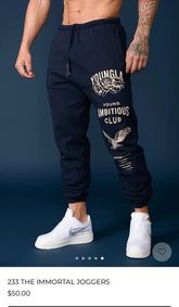 MATERIAL: 100% Cotton. FIT: Oversized. DESIGN: Made with soft fleece cotton and an oversized fitting, the immortal joggers are here to stay. Rock the baggy looks at the gym or outside. The Young Ambitious Club print on the left leg represents the mentality of our core audience. The hunger of the hunting eagle and the blossom of the roses all show the immortality of our dream. The dream to succeed. WHY WE MADE THIS: These are probably the coolest YoungLA Joggers we have made to date!! The prints and the fit of the joggers just differentiate them from anything we have made before! We are extr